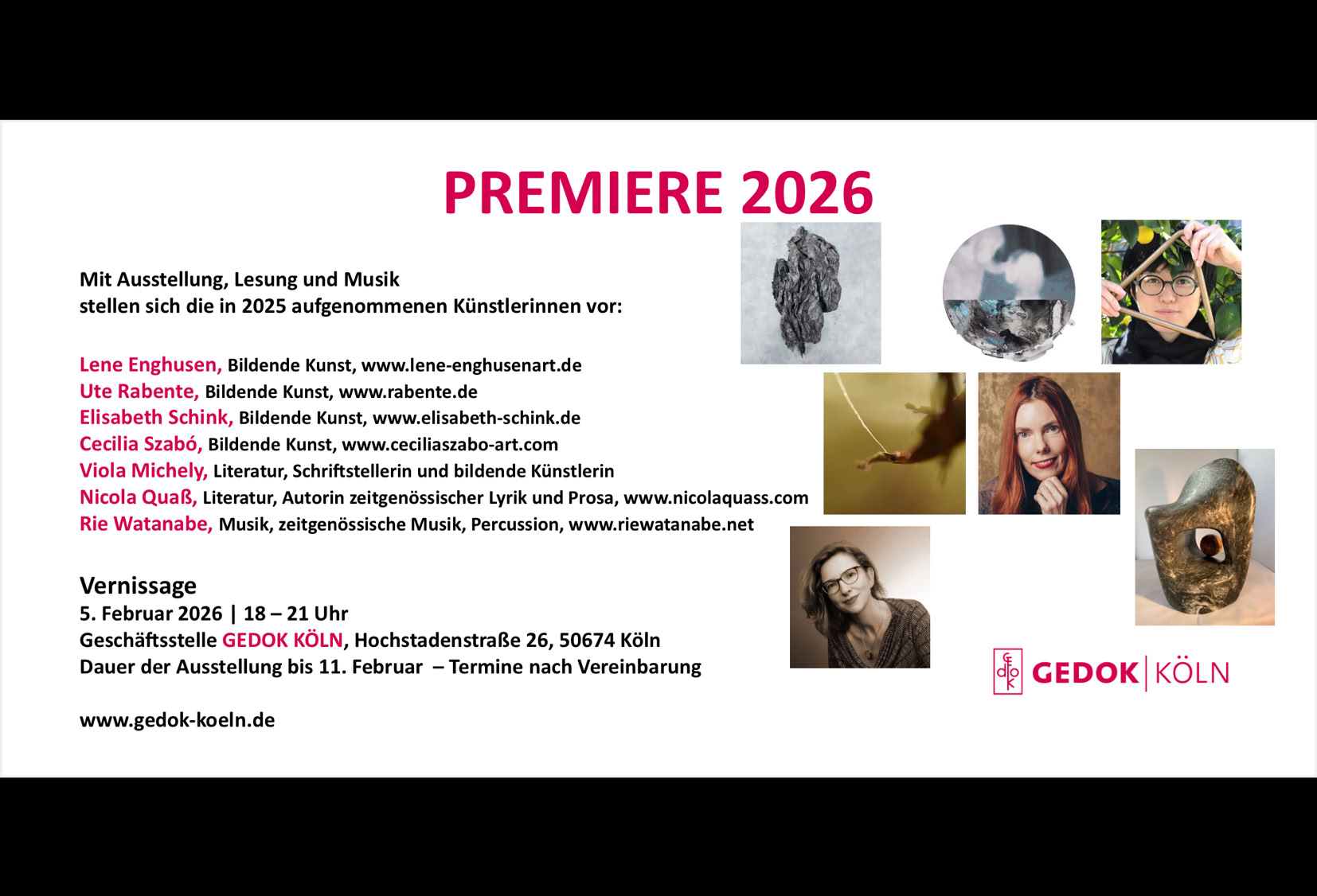 Am 5. Februar gebe ich meine Premierenlesung bei der GEDOK Köln anlässlich meiner Aufnahme. Ich freue mich sehr.